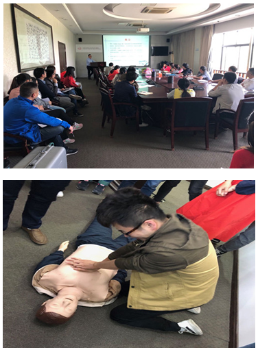 第二阶段主要结合理论知识进行实际操作,现场准备了人体模型进行心肺复苏练习。参会人员结合讲解,逐一实际操作并掌握了心肺复苏方法,提高了紧急情况下的处理能力。