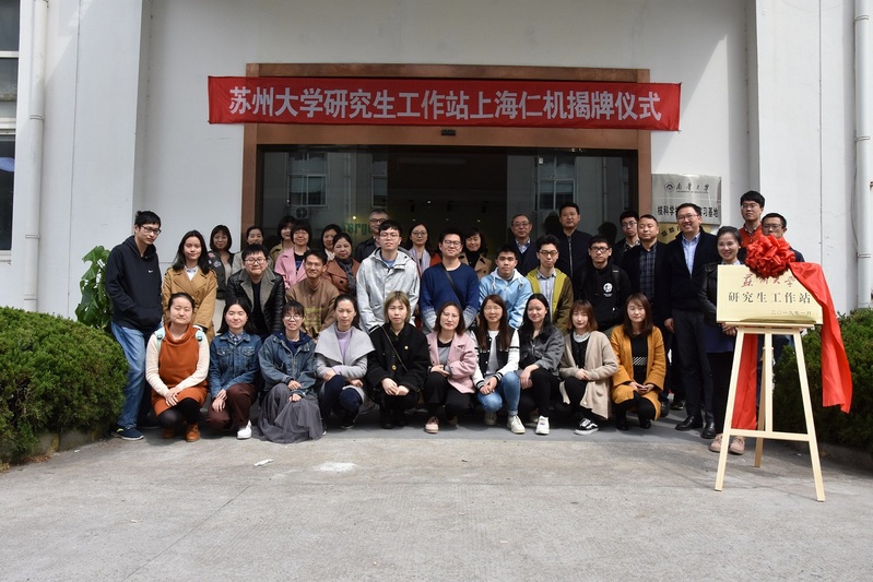 启动会正式开始前,上海仁机董事长李敬磊及苏州大学放射医学协同创新中心党委书记曹建平教授为苏州大学研究生工作站揭牌,双方均表示希望建立起公司与学校的长期合作关系,共同促进人才培养,随后苏州大学的到访师生与公司工作人员进行了合影。