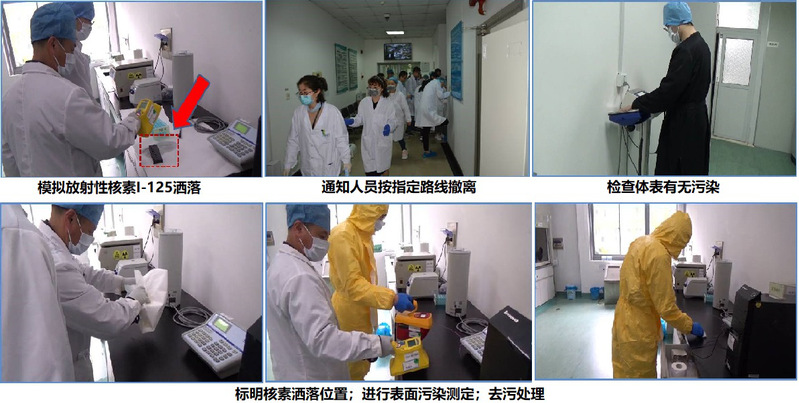 为了巩固广大实验人员的辐射安全防护意识,熟悉放射性开放实验室发生辐射事故后的应急处置流程,做到科学、有序、有效应对可能发生的事故,并在发生事故后能够避免人员伤亡,控制事故范围和严重程度,防止放射性核素扩散,准确向公众传递可靠信息以避免发生“核恐慌”,2019年4月19日上午10:15组织开展了辐射安全事故应急演练,由放射医学协同创新中心核应急小组、中心应急领导小组、活性区管理人员和工作师生等参加。本次应急演练模拟了放射性核素实验过程中发生放射性核素125I洒落,造成放射性核素地面和操作台表面污染的突发状况,演习了启动应急预案、值班人员和应急小组工作人员组织在场人员有序撤离、标明核素洒落、表面污染测定、去污处理以及向有关单位上报相关情况等完整流程,提高了师生们应对发生辐射安全事故时的应急反应能力和处置水平。