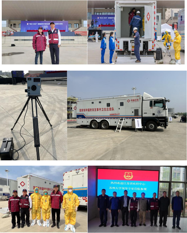 为了进一步加强国家核和辐射突发事件卫生应急以及江苏省中毒突发事件卫生应急队伍的建设和技术交流,提升核辐射及中毒等多种灾害事故卫生应急现场处置能力,省卫生健康委组织开展“苏卫-2023”核辐射及中毒突发事件卫生应急联合演练。本次演练由江苏省卫生健康委员会主办、江苏省疾病预防控制中心、连云港市卫生健康委员会、徐圩新区管委会承办,苏州大学放射医学与防护学院、苏州大学附属第二医院等单位协办。江苏省卫生健康委应急办主任顾帮朝等领导出席活动。我中心选派了刘志勇、李明老师参加了本次演练活动,从“实战”角度锻炼了学科的专业技能,提高了辐射防护和应急事件的处置能力。此次演练模拟地震造成核电站放射性物质泄漏以及化工园区液氯泄漏,国家核和辐射突发事件卫生应急队和江苏省突发中毒事件卫生应急队开展了多个项目的联合演练,包括:应急队伍紧急集合与拉练、应急人员与区域内企业员工防护、伤员分类救治、中毒医疗救护——心肺复苏、医疗救护——骨折合并污染伤口处理、受污染人员的去污洗消、辐射场所监测和评价、样品采集和处理、食品和饮用水快速监测、体内放射性核素污染处置、甲状腺内污染监测——碘片发放、医疗救护——远程会诊(附二院)、直升机伤病员快速运送、远程通讯和后勤保障等科目。演练充分展示了国家核和辐射突发事件卫生应急队能力建设的成果。