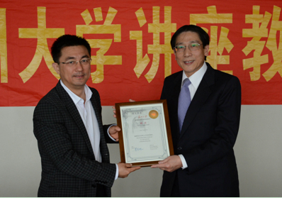 5月9日上午,放射医学协同创新中心在炳麟图书馆820会议室举行苏州大学讲座教授聘任仪式,苏州大学副校长熊思东教授与会致辞并代表学校向Tom K. Hei教授颁发讲座教授聘书。Tom K. Hei教授首先肯定了放射医学与防护学院建院五十年来的发展,也介绍了他实验室的研究工作。Hei教授同时表示将与放射医学协同创新中心共同努力,推动放射医学的发展。仪式由放射医学协同创新中心柴之芳院士主持,熊思东副校长、医学部党工委书记邹学海和放射医学协同创新中心许玉杰副院长出席了聘任仪式。