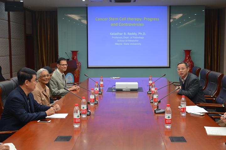 2015年11月17日上午,美国Department of PathologyWayne State University School of MedicineKaladhar B. Reddy教授来学院访问,并作报告:Cancer Stem Cell therapy: Progress and Controversies。报告会由学院党委书记曹建平教授主持。