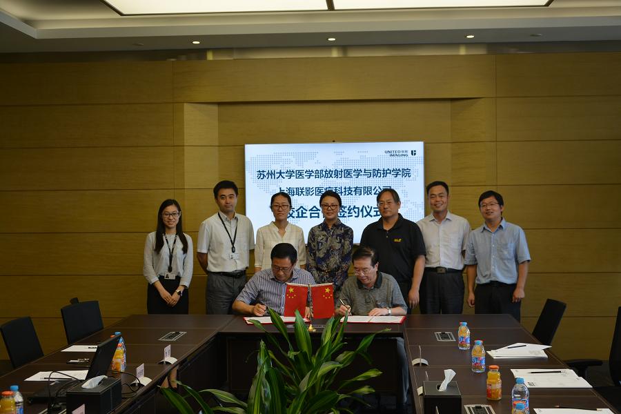 2016年8月10日,苏州大学放射医学协同创新中心与上海联影医疗科技有限公司合作协议在联影公司会议室举行。参加本次会议的有苏州大学医学部放射医学与防护学院院长柴之芳院士、副院长许玉杰、华道本、史海斌、朱本兴,上海联影医疗科技有限公司董事长薛敏、联席总裁俞晔珣、万莉娟、李郁、郑君。会议由薛敏主持。