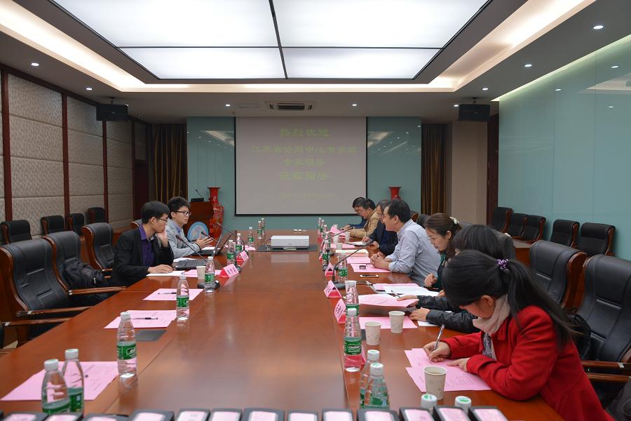 专家江建锋介绍了本次实地检查的内容。主要包括两大方面,(1)中心建设情况、立项建设申请书、立项建设批复文件、立项建设后制定的各项组织章程及各项具体制度、章程和具体制度有效执行的证明资料、发展规划、各年度总结报告、产出完成情况、三项代表性成果;(2)中心财务管理制度、省级专项资金下拨文件、自筹资金筹措到位文件、省级专项资金支出情况、自筹资金支出情况等。