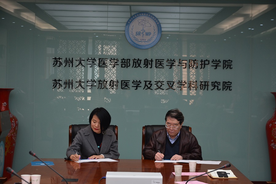 2017年3月9日上午,在苏州大学独墅湖校区会议室举行了放医中心与华克医疗科技(北京)股份公司的战略合作协议签字仪式。华克公司总经理刘爱娣、市场运营总监张磊、医疗运营总监朱思甜;中心主任柴之芳及曹建平、许玉杰、涂彧等中心师生出席本次合作协议签字仪式。