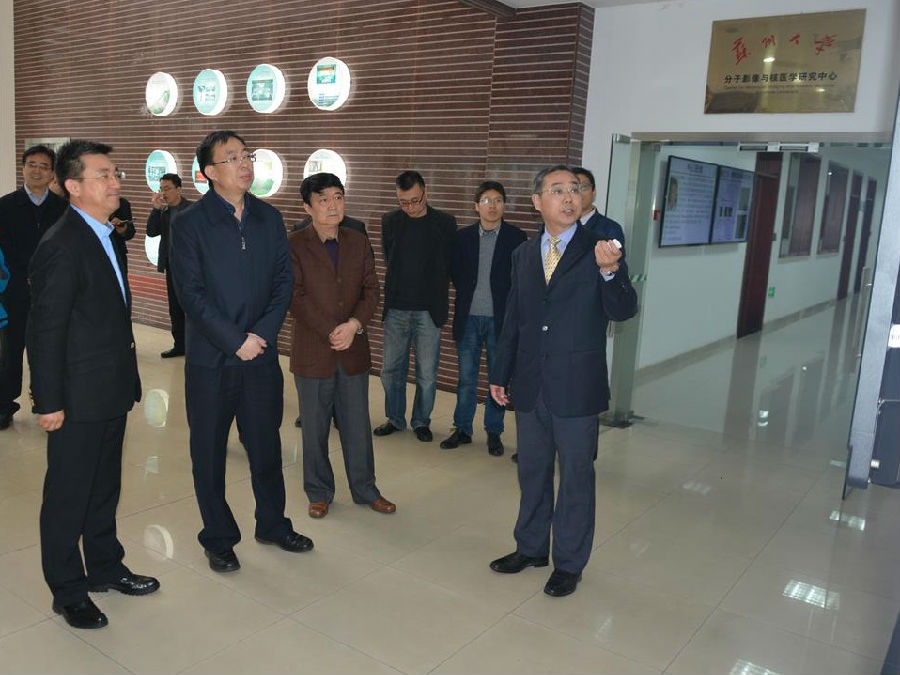 2017年3月19日下午,江苏省教育厅党组书记、省委教育工委书记葛道凯一行莅临苏州大学视察指导工作。江苏省教育厅高等教育处处长袁靖宇、职业教育处处长刘克勇,苏州市教育局局长张曙、副局长高国华陪同视察。第一站来到我校放射医学协同创新中心。校党委书记王卓君、校长熊思东,以及校党委办公室、宣传部、校长办公室、人事处、教务部、科学技术研究部等职能部门主要负责人陪同。