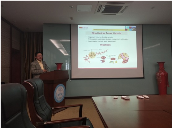 11月2日上午,美国休斯敦卫理公会医院研究所纳米医学系胡晔教授应中心邀请在苏大独墅湖校区作了题为"Blood Trial - Nanotechnology-enabledBiomarker Discovery"的精彩学术报告。