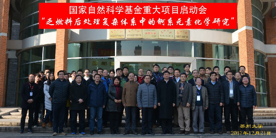 2017年12月21日,国家自然科学基金重大项目“乏燃料后处理复杂体系中的锕系元素化学研究” 项目启动会在苏州大学成功召开。该项目是迄今苏大获批的首个自然科学基金重大项目,共包括“复杂体系下锕系元素价态变化规律与调控方法”、“复杂体系下锕系元素萃取分离”、“锕系元素高温熔盐化学”和“锕系元素固体化学性质”四个子课题,分别有由中国原子能科学研究院、清华大学核能与新能源技术研究院、中国科学院高能物理研究所及苏州大学医学部放射医学与防护学院四家单位承担,项目总负责人为苏州大学柴之芳院士。