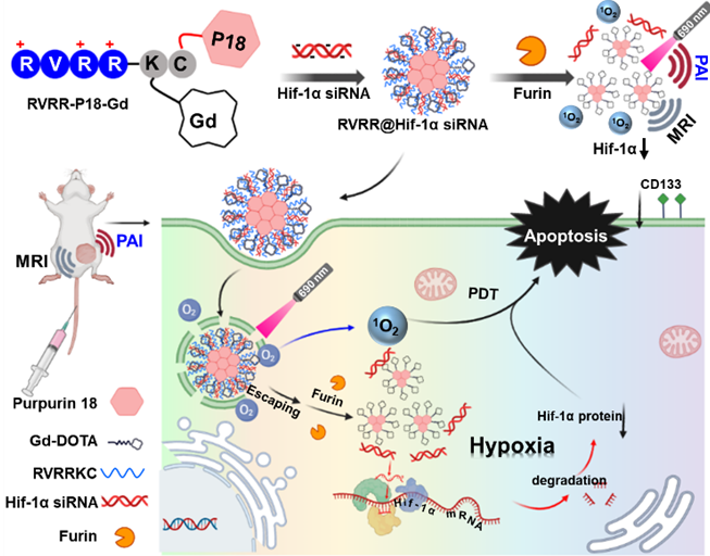 图1.弗林蛋白酶介导的Hif-1α siRNA肿瘤精准递送用于抗乏氧肿瘤光动力治疗