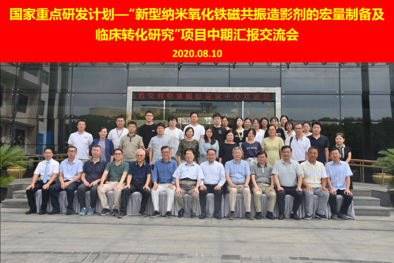 2020年8月10日下午,国家重点研发计划“纳米科技”重点专项—“新型纳米氧化铁磁共振造影剂的宏量制备及临床转化研究”项目中期汇报交流会成功召开。出席本次会议的有专家组成员:国家纳米科学中心赵宇亮院士、东南大学顾宁教授、南开大学庞代文教授、北京大学药学院张强教授、中国食品药品检定研究院耿兴超研究员、上海市第一人民医院王悍副院长、苏州大学附属第一医院胡春洪副院长;苏州大学科学技术处钱福良处长;项目组成员:苏州大学医学部放射医学与防护学院院长、放射医学与辐射防护国家重点实验室主任柴之芳院士,苏州大学医学部放射医学与防护学院执行院长、放射医学与辐射防护国家重点实验室副主任、项目总负责人高明远教授,军事科学院军事医学研究院关勇彪研究员及助理刘爱燕,解放军总院马林主任,中科院化学所王铁研究员、姚立研究员,苏州大学李桢教授、苗庆庆教授、朱然副教授、曾剑峰副教授、汪勇副教授、徐加英副研究员,以及分子影像与核医学研究中心师生。会议由李桢主持。
