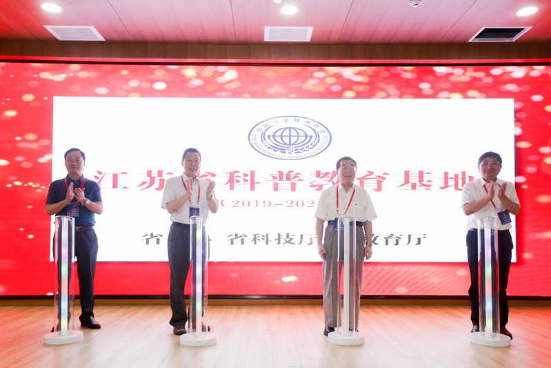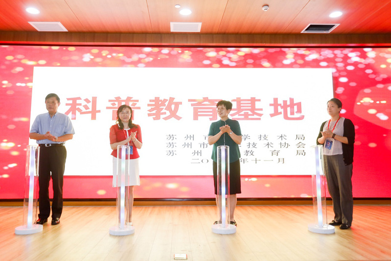 随后,到场的嘉宾为苏州市科普基地和江苏省科普基地揭牌。同时为柴之芳院士寄予科普基地的题词揭幕。
