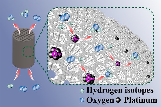 为了实现“碳中和、碳达峰”的战略目标,核聚变能和氢能行业引起了大家的广泛关注。其中氢同位素的催化氧化已被应用于应急净化系统,以降低氢爆风险或减少氚气排放。催化剂的性质决定了应急净化系统中氢同位素富集和去除的效率。然而,传统的铂催化剂在催化过程中的聚集、水蒸气的失活和同位素效应等,皆可导致催化活性在使用过程中持续下降。