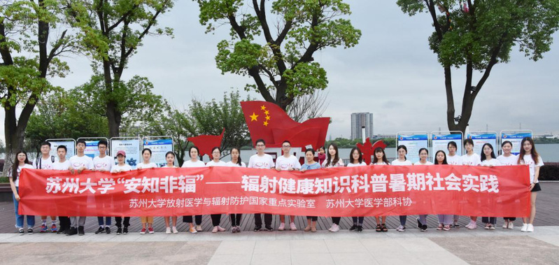 为全面普及辐射健康知识,提升全民辐射安全意识,2019年7月10日至15日,来自苏州大学医学部学生科技协会的大学生们在苏州市范围内开展了“安知非辐”—辐射健康知识科普暑期社会实践活动。本活动由苏州大学团委、医学部团委主办,放射医学协同创新中心及医学部学生科技协会承办。