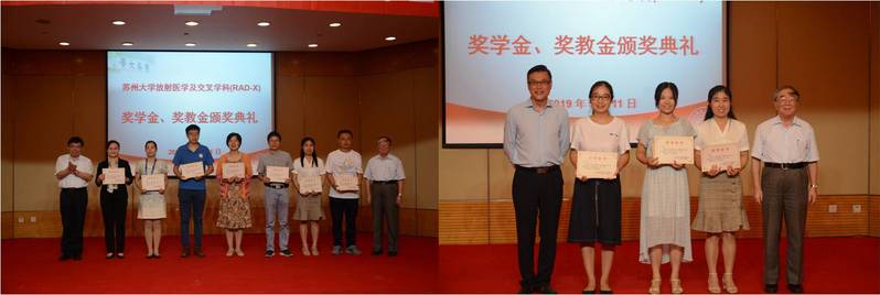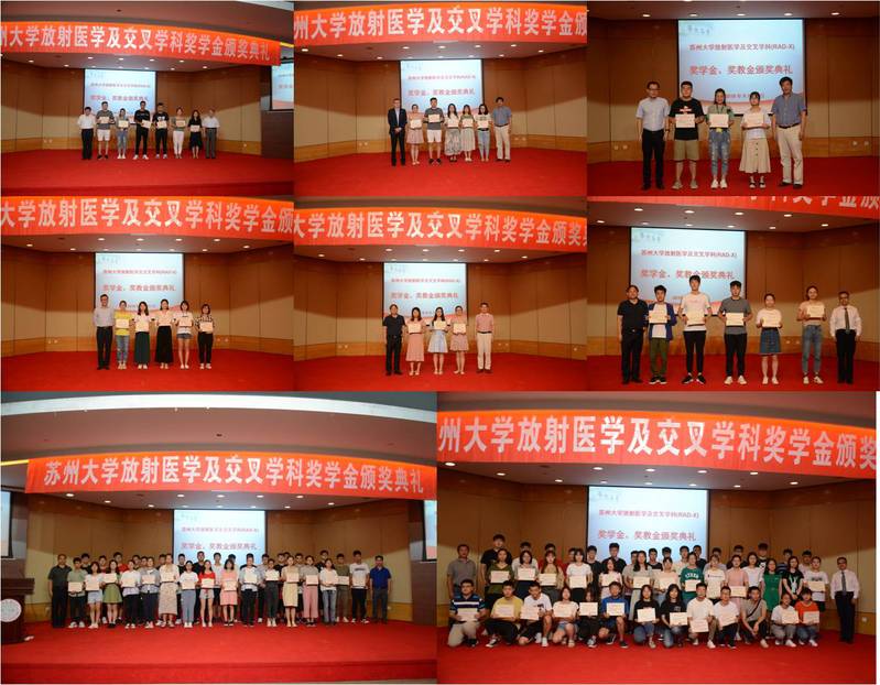 苏州大学放射医学及交叉学科(RAD-X)研究生奖学金由柴之芳院士个人出资,苏州大学“泰和诚”放射医学奖学金由泰和诚医疗集团有限公司出资,苏州大学“华克”放射医学奖学金由华克医疗科技(北京)股份公司出资,苏州大学“华益”放射医学奖学金由江苏华益科技有限公司出资,苏州大学“爱索特”放射医学奖学金由深圳爱索特国际同位素有限公司出资,苏州大学“南通肿瘤医院”放射医学奖学金由南通市肿瘤医院出资,这些奖学金的设立旨对学院优秀青年教师以及研究生、本科生进行奖励,以激励青年教师、研究生和本科生学习、科研的积极性和创造性。同时,也充分体现了社会力量对学院发展的大力支持和对学院师生的深切关爱。