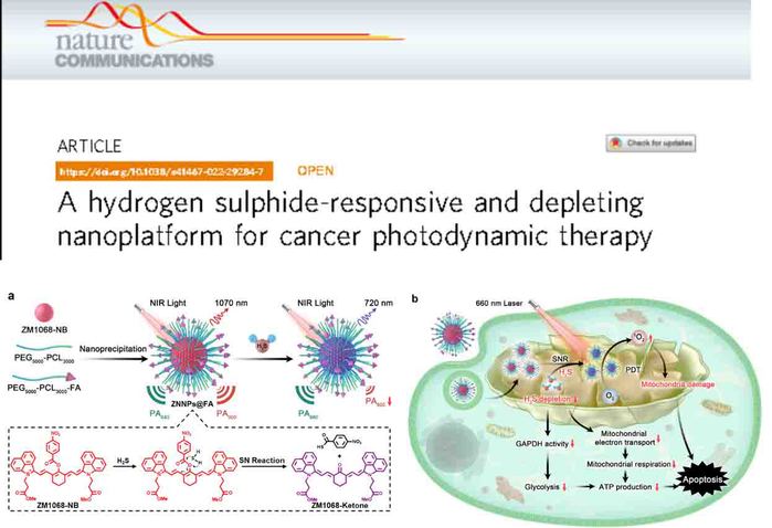史海斌教授团队在活体H2S精准定量及结肠癌肿瘤高效治疗方面取得新进展,相关成果以“A Hydrogen Sulphide-Responsive and Depleting Nanoplatform for Cancer Photodynamic Therapy”为题于2022年3月30日在线发表在国际知名杂志Nature Communications上,论文链接:https://www.nature.com/articles/s41467-022-29284-7。