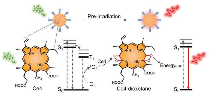 图1. 二氢卟吩e4的余辉发光过程示意图