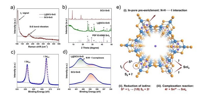 图3. SCU-SnS的吸附碘的机理分析