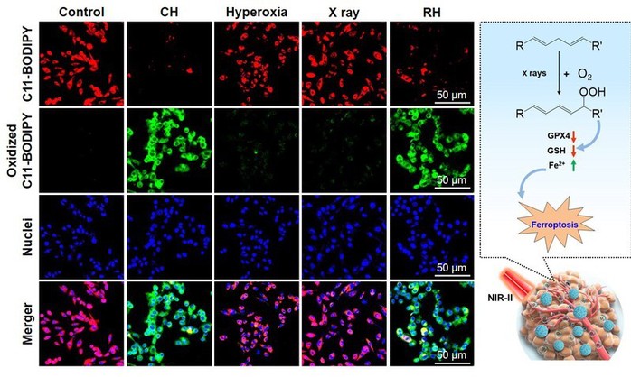 图4 微氧工厂辅助放射治疗导致细胞脂质过氧化物堆积引发铁死亡