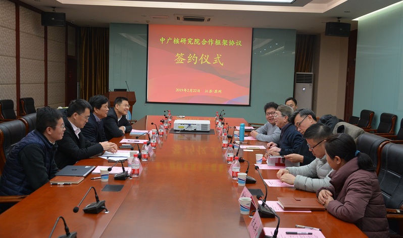 2019年02月22日下午,苏州大学放射医学协同创新中心与中广核研究院合作框架协议签约仪式在苏州大学独墅湖校区举行。参加本次签约仪式的有苏州大学放射医学协同创新中心主任柴之芳院士、高明远常务副院长、华道本教授、王殳凹特聘教授等;中广核研究院副院长孙吉良、科技管理部副主任董超群、环境工程中心副主任刘夏杰和环境工程中心三废与辐射防护研究所负责人林鹏等。会议由高明远主持。